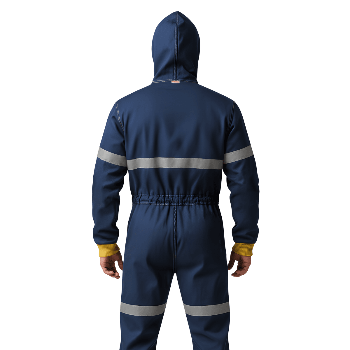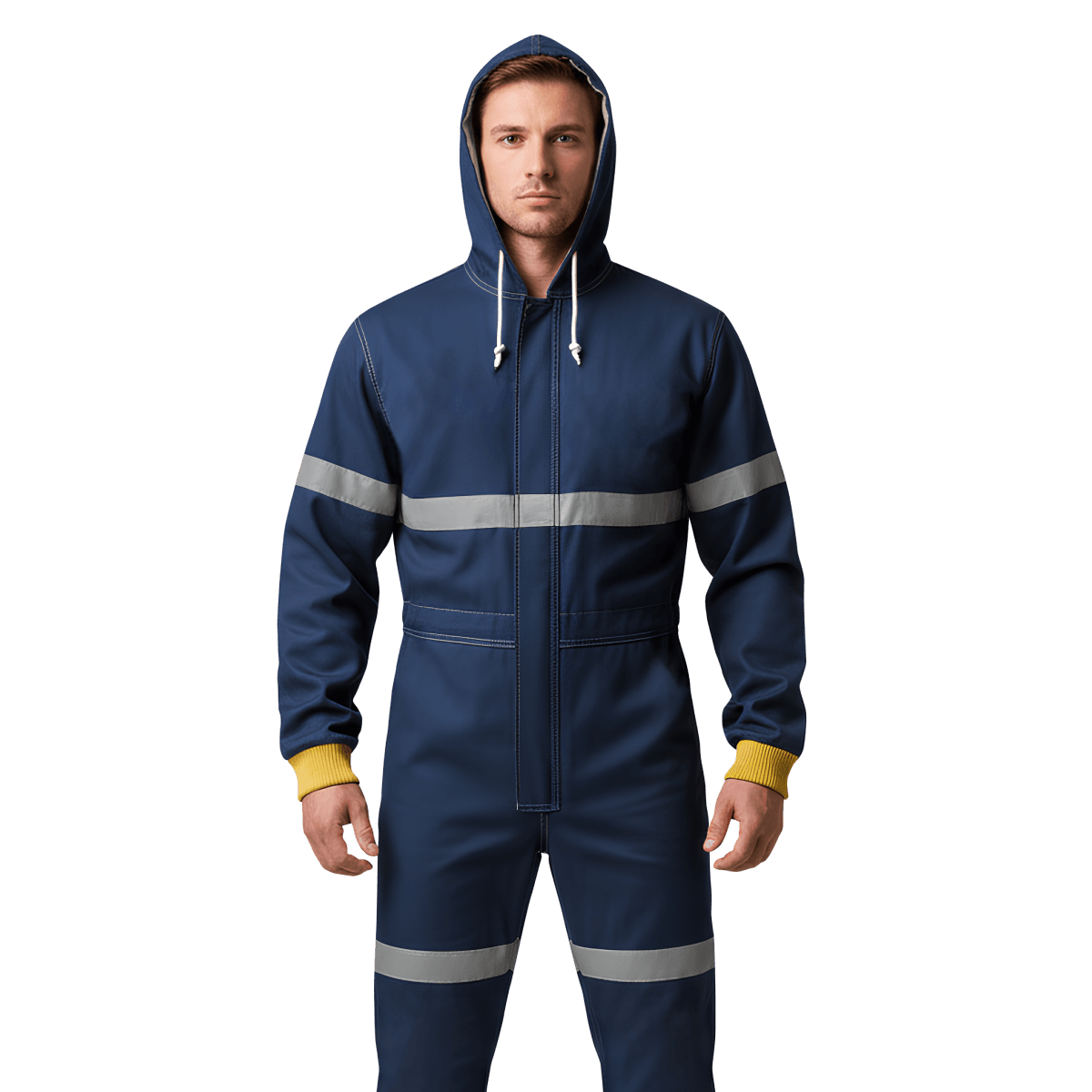 Macacão de proteção do usuário contra riscos térmicos (vapor superaquecido, saturado e condensado), riscos químicos e umidade. Desenvolvido com tecido sarjado, retardante a chamas inerente, anti-estático, impermeável e transpirável denominado Protex® Multi-Risk com 290 g/m2. Modelo com capuz acoplado, gola tipo padre, fechamento frontal em zíper e velcro FR, mangas longas, punhos e barras com ajuste em velcro FR, meio cós em elástico. Modelos com ou sem bolsos. Aplicação de logotipos e faixas refletivas opcionais. Costuras seladas em todo o EPI. Concebido e idealizado para uso em conjunto com o forro térmico Omni Quilt Sinergy. Mais uma exclusividade da Protenge!